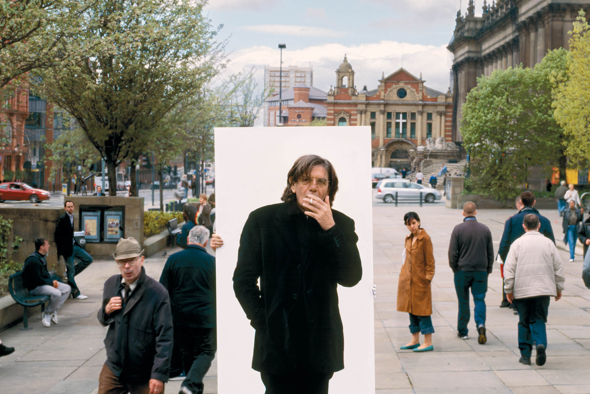 The cover (like the installation images) is a collaboration with photographer Tim Gutt. Spalletti has always lived in Pescara on the Italian east coast. He rarely travels, but visited Leeds to oversee the installation of his show. The artist’s incongruous presence is exaggerated by isolating his silhouette within a field of white. Leeds street life is penetrated for a moment by Spalletti’s gaze.