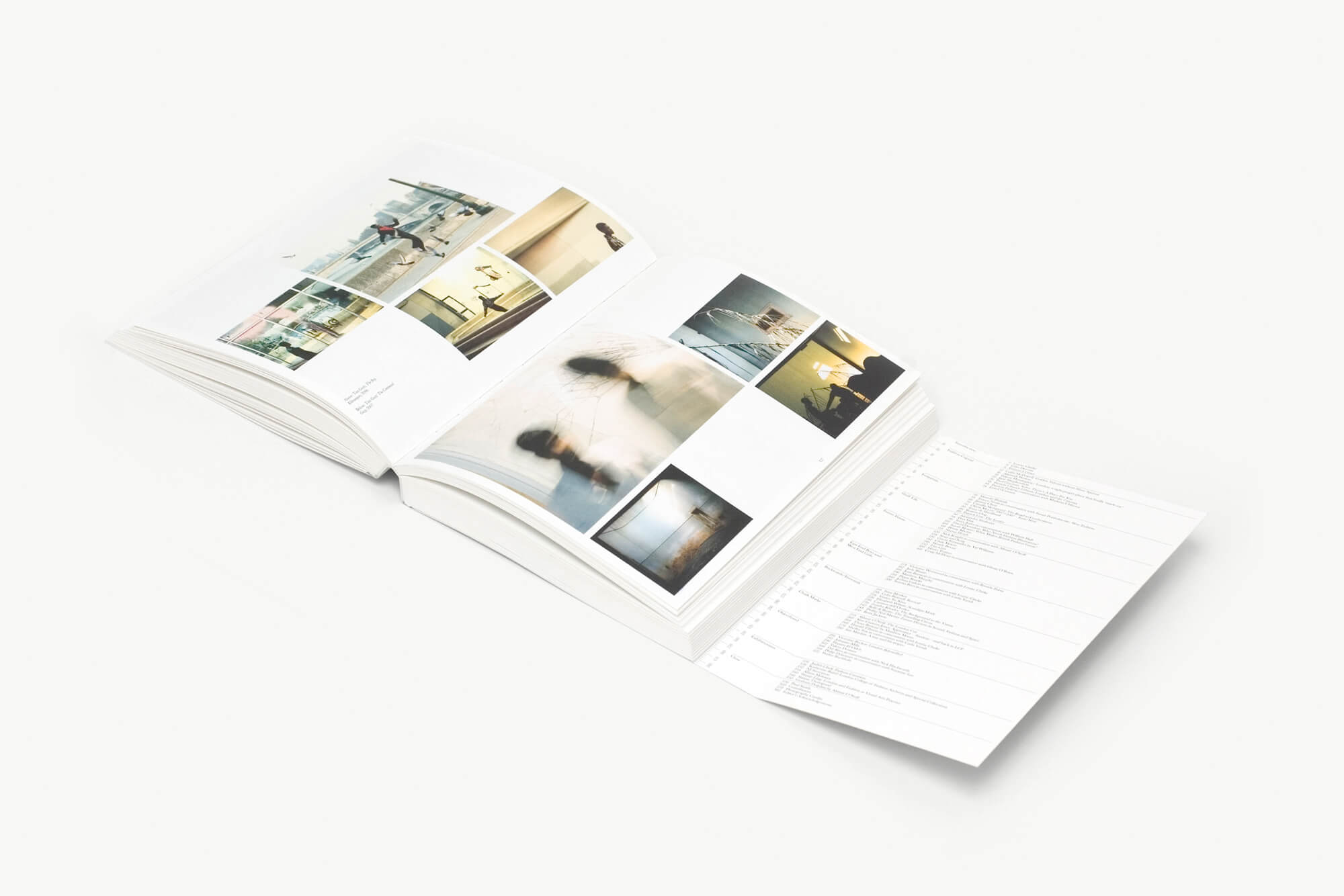 The images (right hand page) and text (left hand page) are strictly separated allowing an already image-rich book to be read purely as a visual essay. This demarcation is exaggerated by placing the image page at right angles.
