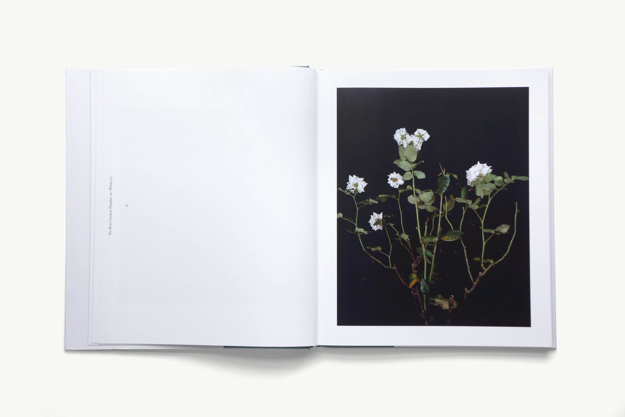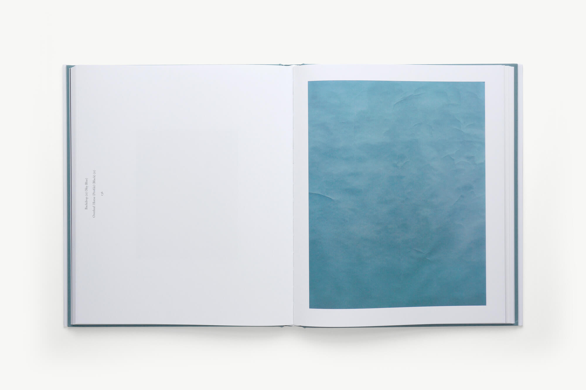 At the end of the book all works are shown at the same scale in relation to one another in a catalogue section. Here all text and images are at 90 degrees to allow increased space for collections to be shown together. This also retrospectively endorses the perpendicularly positioned captions.