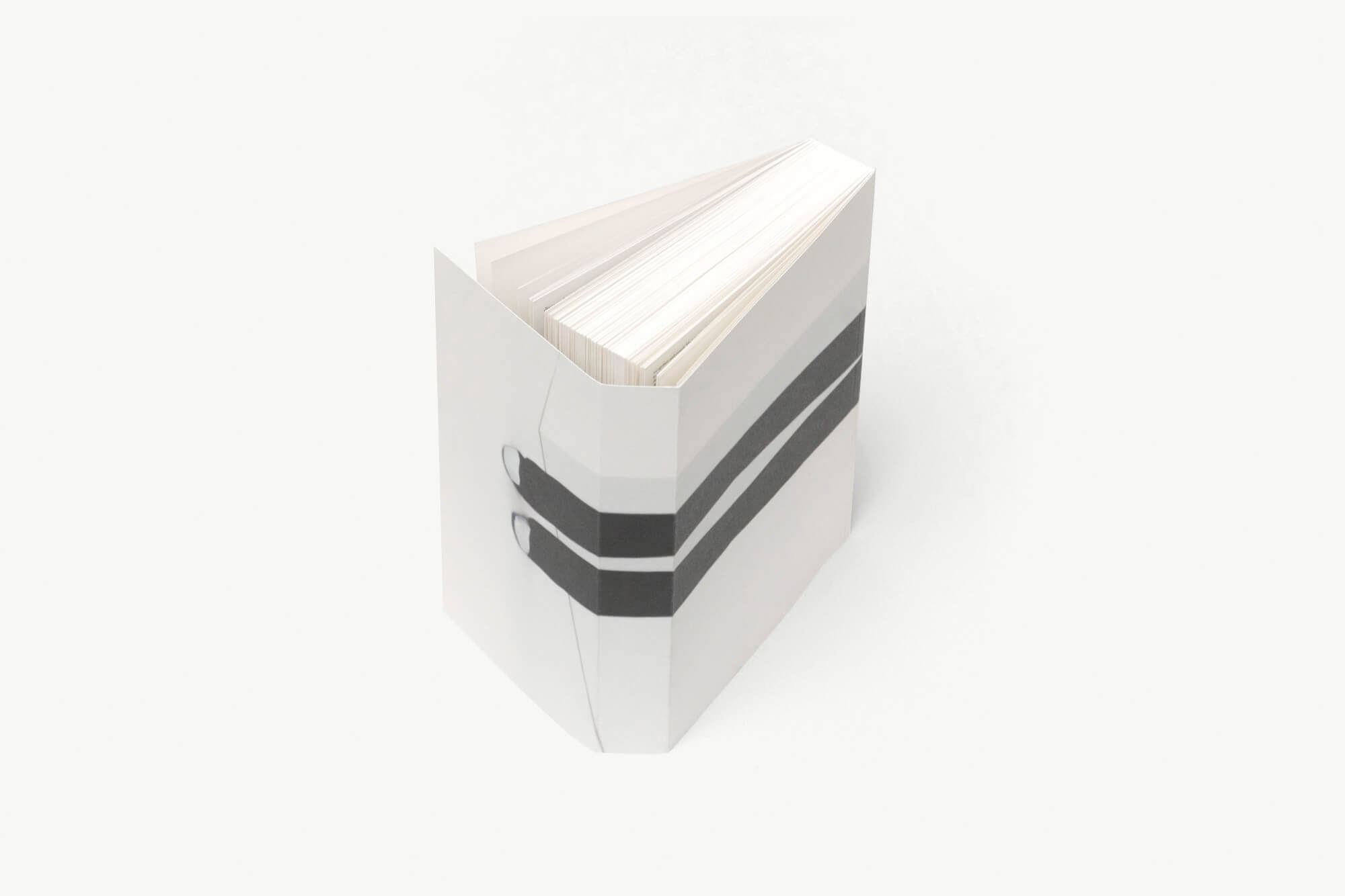 The images (right hand page) and text (left hand page) are strictly separated allowing an already image-rich book to be read purely as a visual essay. This demarcation is exaggerated by placing the image page at right angles.